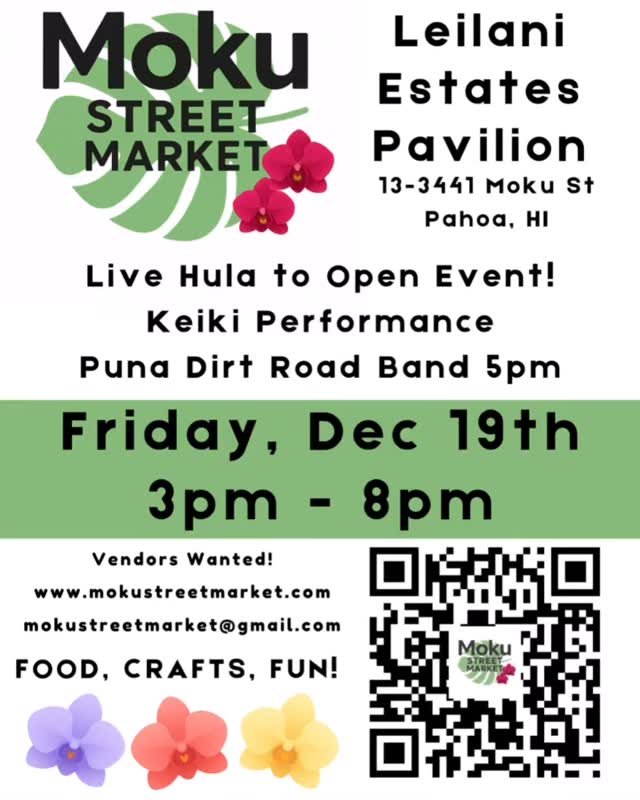 Join us under the Moku Street Pavilion from 3pm to 8pm for local food, crafts, music and more on December 19th, 2025.