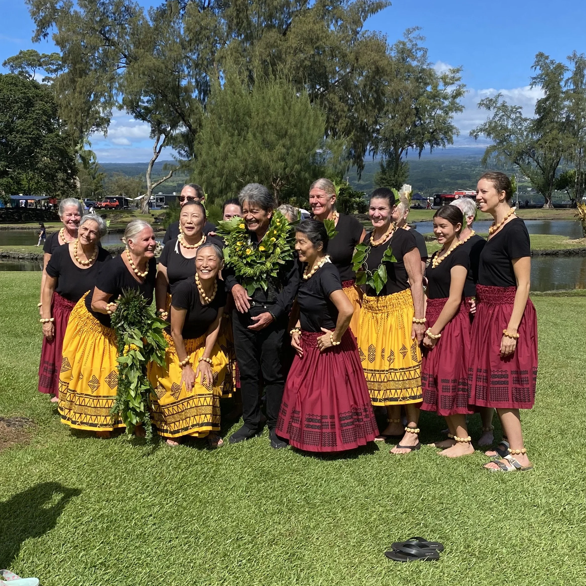 Founded by Poʻo Kumu Hula Kimo Awai; this Hālau has been practicing in Leilani Estates for 12 years. Mahalo to Kumu Hula Robbie Meier-McGrath for supporting this event and bringing their talents to bless this community gathering.